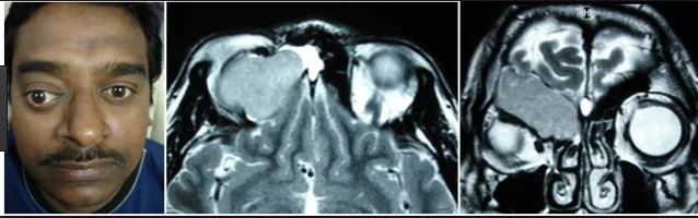 Our patient had a benign condition; a mucocele. The term mucocele was first coined by Rollet in 1896. This is a collection of mucous which cannot drain because of sinus ostia blockage and results in bony expansion due to continued production of mucous. This either occurs because of chronic infection/chronic allergies or as a result of trauma.