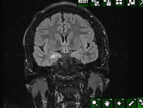 Our patient had neurocutaneous melanosis. This is a rare disease characterized by pigmented nevi that affect not only the skin but the leptomeninges. It was first described in 1861 by Rokitanski. About 1/3 of the patients diagnosed are symptomatic often presenting with seizures, cranial nerve palsies, hydrocephalus or spinal cord involvement. It is associated with Dandy-Walker malformation in 10% of the cases. Our patient had presented with seizures as a child and on imaging was found to have melanosis in the R temporal lobe. Because of intractable seizures he underwent a R temporal lobectomy in 2015.
