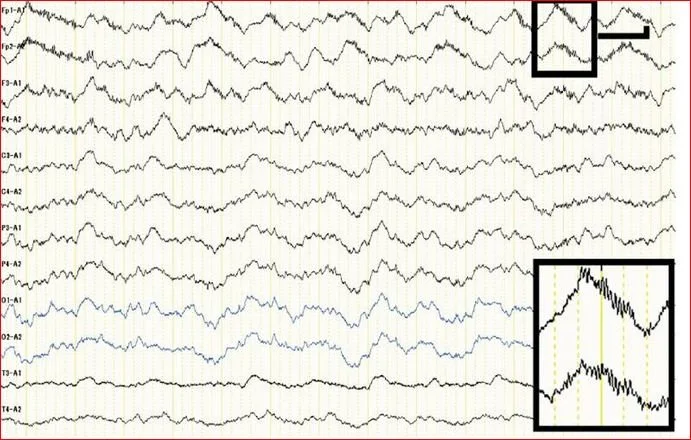 You notice bizarre Delta waves on her EEG. What could be wrong?