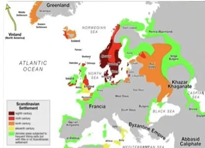 The Vikings raided widely . Their conquests gave us the word “Slavic” meaning “slave”.